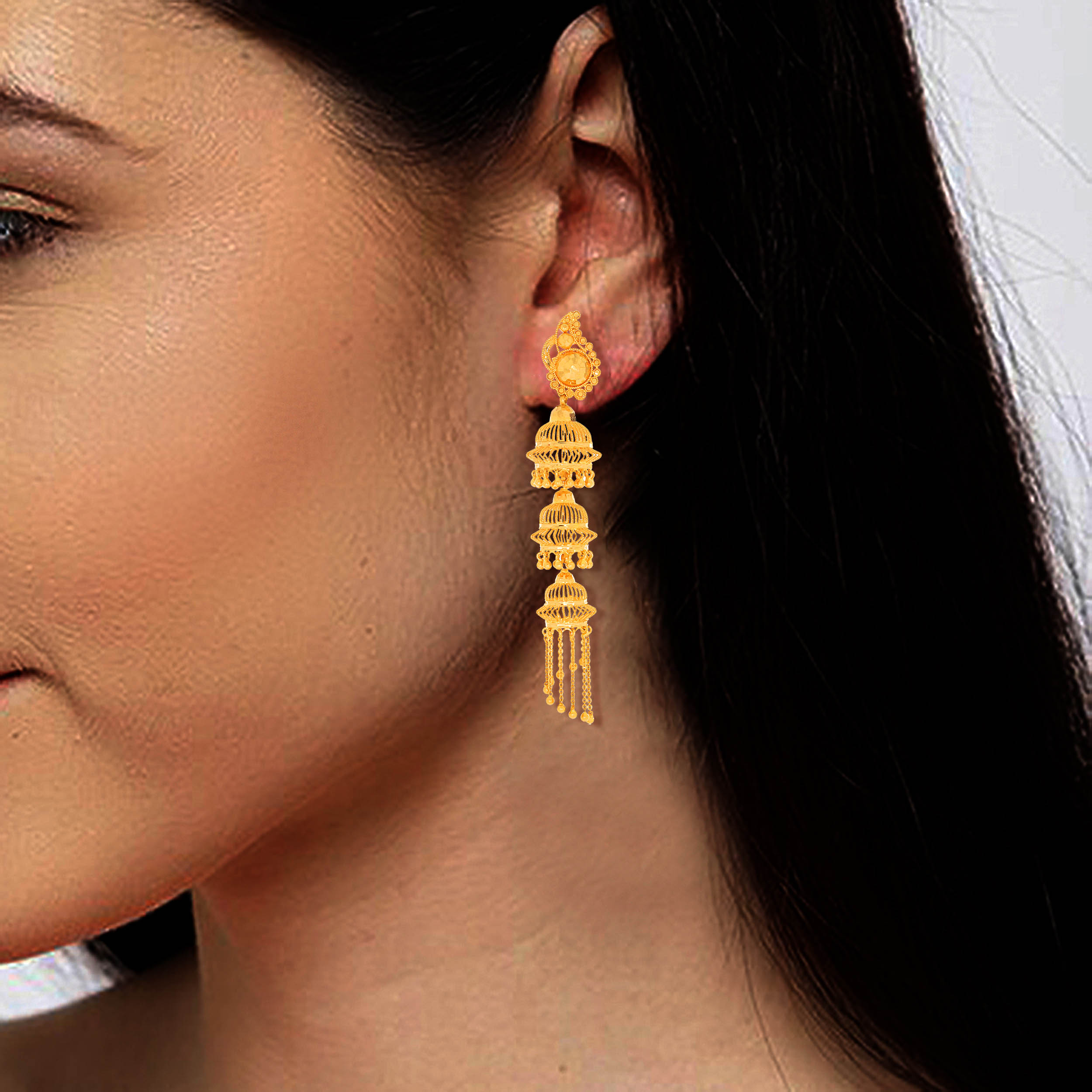 • RAI AABI JEWELS 22CT BIS HALLMARK GOLD JHUMKA FOR WOMEN